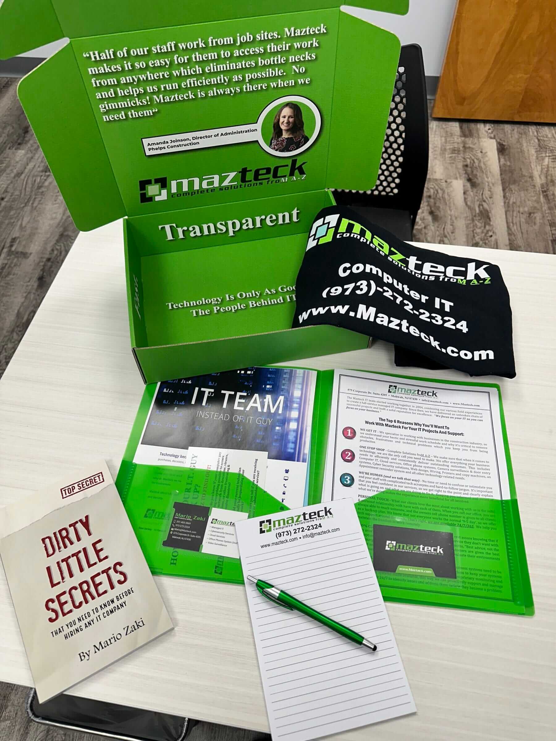 Our custom Shock-And-Awe box helped us to nearly DOUBLE our close rate! And, of course, we have completely “Robinized” our website by including “4 Big Reasons To Choose Mazteck IT To Support Your Computer Network,” a free report titled “21 Critical IT Security Questions,” client testimonials and more.